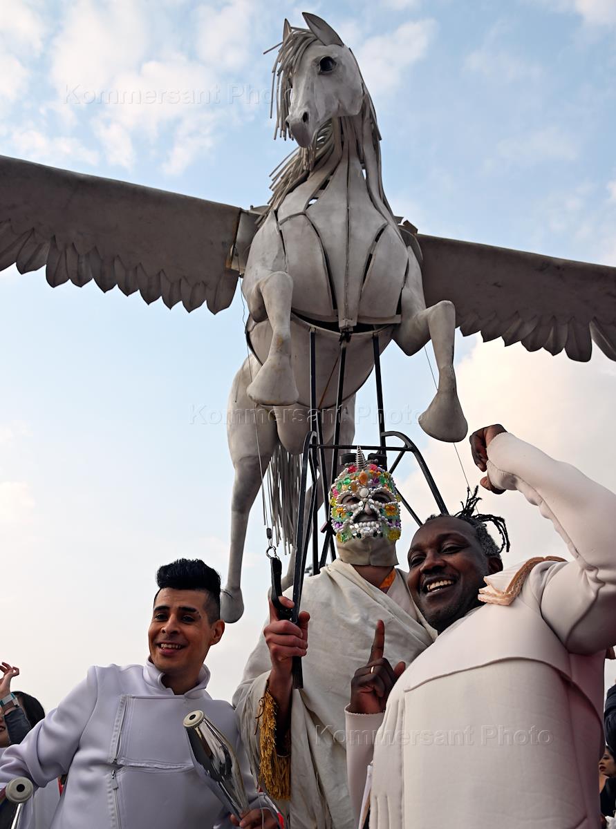 Всемирный фестиваль молодежи на Федеральной территории "Сириус". Участники шествия молодежи стран мира на площади "Душа России".