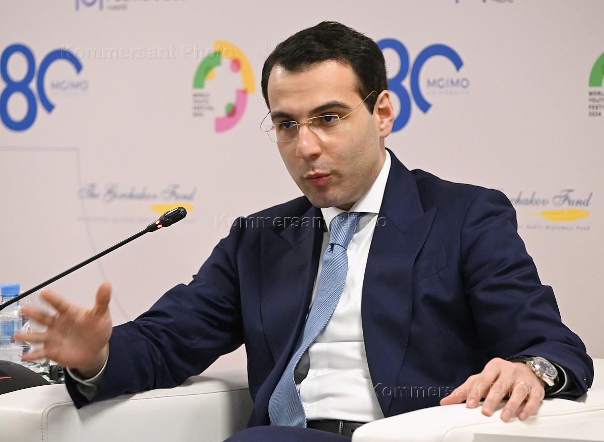 Всемирный фестиваль молодежи на Федеральной территории "Сириус". Панельная дискуссия "Россия в новых международных условиях: возможности для политики, экономики и науки". Министр иностранных дел Республики Абхазии Инал Ардзинба во время дискуссии.