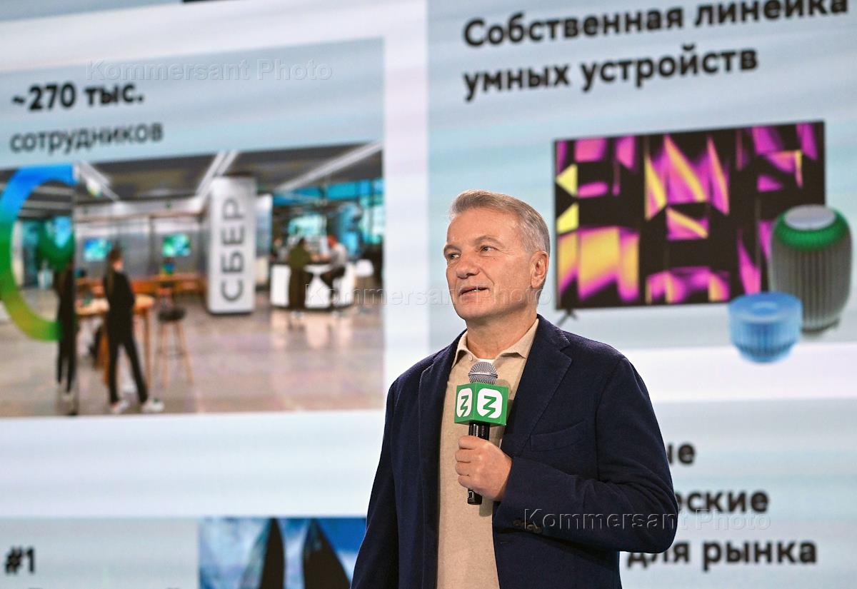 Всемирный фестиваль молодежи на Федеральной территории "Сириус". Открытый диалог "ИИ – инструмент человека для достижения целей". Президент, председатель правления Сбербанка России Герман Греф во время выступления на диалоге.