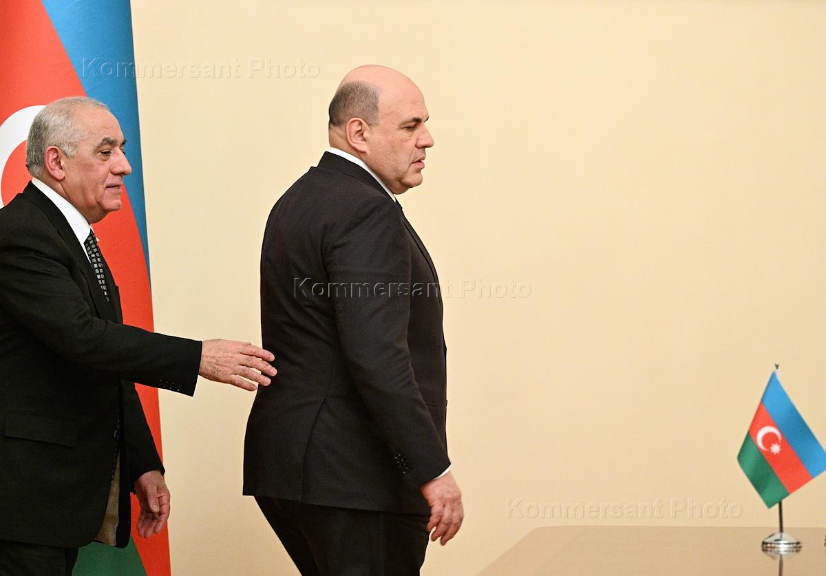 Рабочий визит председателя правительства России Михаила Мишустина в Азербайджан. Российско-азербайджанские переговоры. Председатель правительства России Михаил Мишустин (справа) и премьер-министр Азербайджана Али Асадов (слева) перед началом церемонии подписания документов по итогам переговоров.
