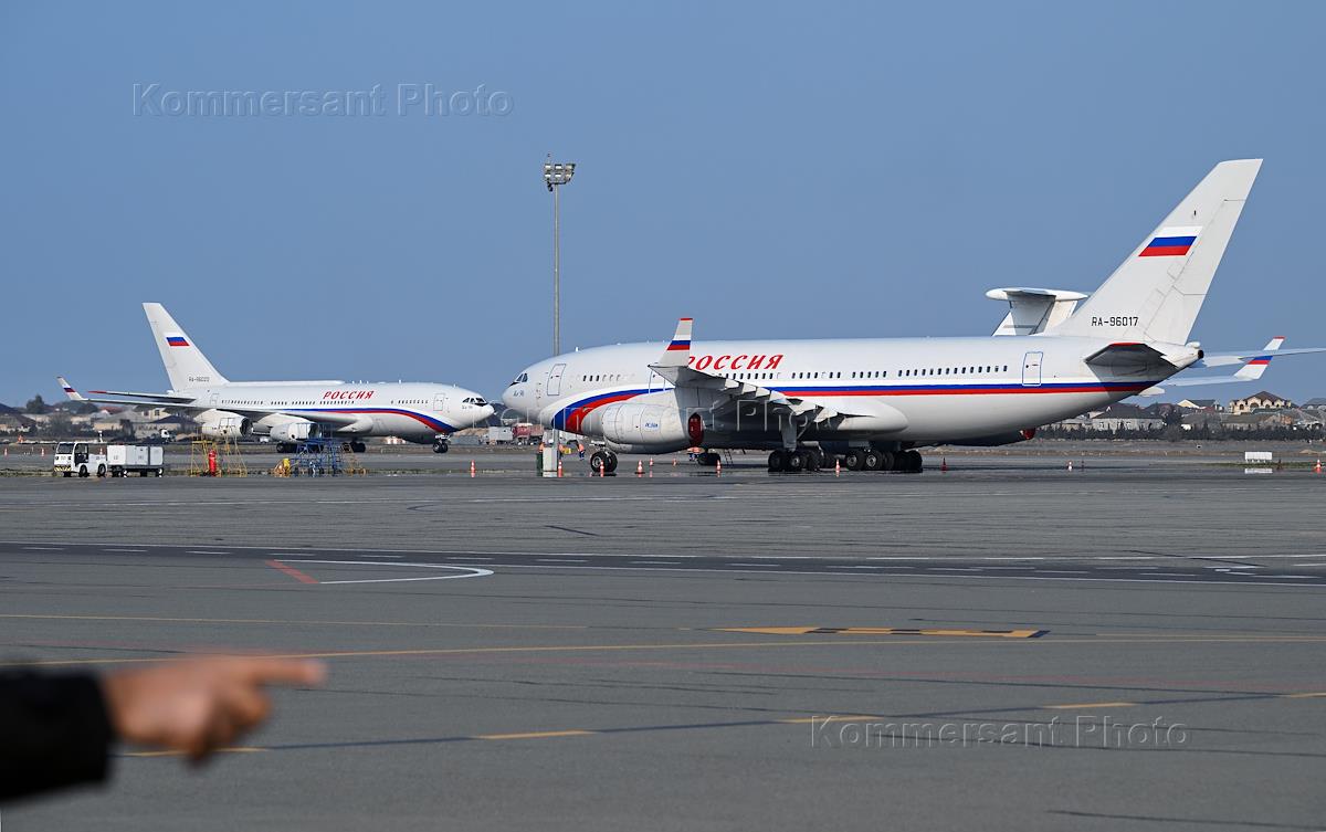 Рабочий визит председателя правительства России Михаила Мишустина в Азербайджан. Прибытие председателя правительства России Михаила Мишустина в аэропорту имени Гейдара Алиева.