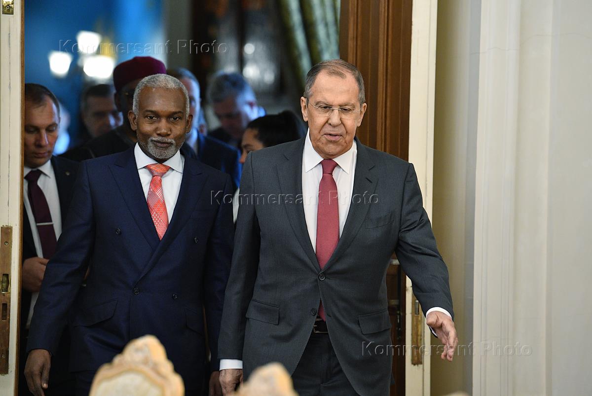 Negotiations between Russian Foreign Minister Sergei Lavrov and the Minister of Foreign Affairs of the Federal Republic of Nigeria, Yusuf Tuggar, at the Reception House of the Russian Foreign Ministry. Russian Foreign Minister Sergei Lavrov (left) and Foreign Minister of the Federal Republic of Nigeria Yusuf Tuggar (right) before the start of negotiations.