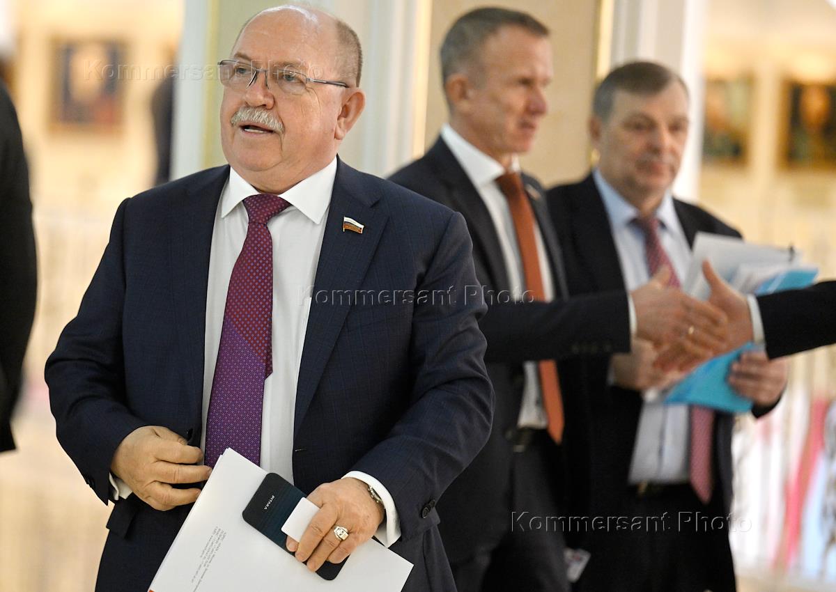 Plenary meeting of the Federation Council of Russia. Head of the Federal Antimonopoly Service of Russia Maxim Shaskolsky (center) before the start of the meeting.