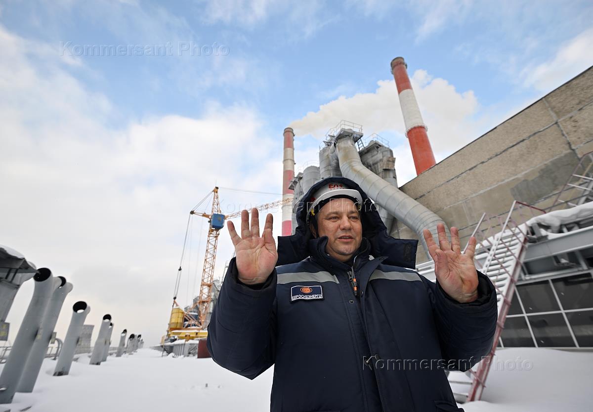 Усть-Илимская ТЭЦ (входит в компанию в "Эн+", основанную Олегом Дерипаской). Трубы ТЭЦ. Сотрудник на территории ТЭЦ.