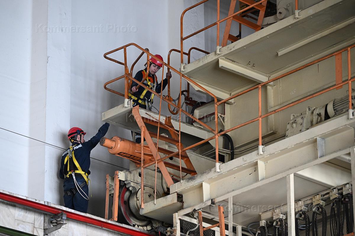Усть-Илимская ГЭС (входит в компанию "Эн+", основанную Олегом Дерипаской). Рабочий на плотине гидроэлектростанции.