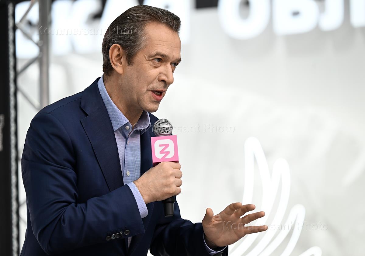 Всемирный фестиваль молодежи на Федеральной территории "Сириус". Марафон "Знание. Первые". Лекция "Россия в сердце: патриотизм без лозунгов" председателя союза театральных деятелей России, художественного руководителя театра и театральной школы Олега Табакова Владимира Машкова.