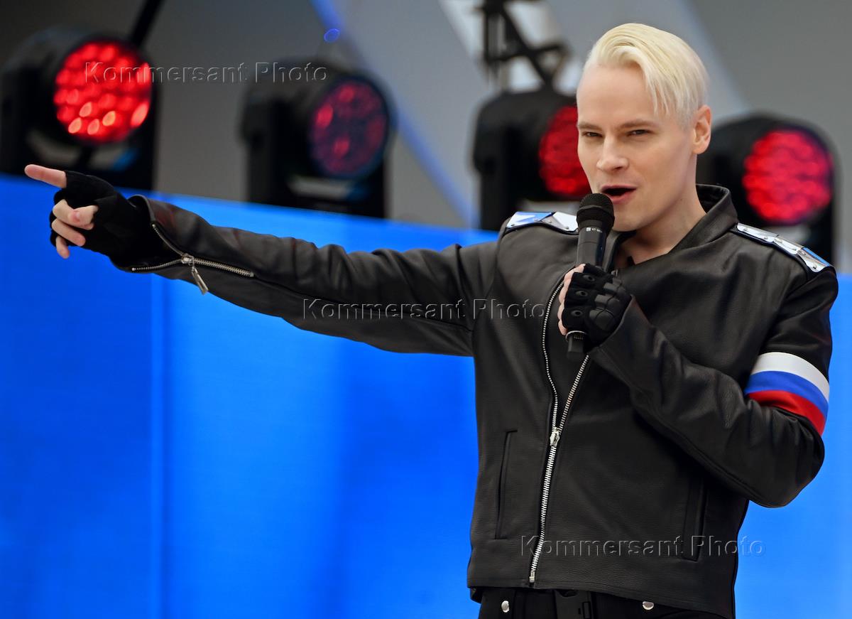 Всемирный фестиваль молодежи на Федеральной территории "Сириус". Утреннее шоу WAKE UP CITY. Певец SHAMAN (Ярослав Дронов) во время шоу.