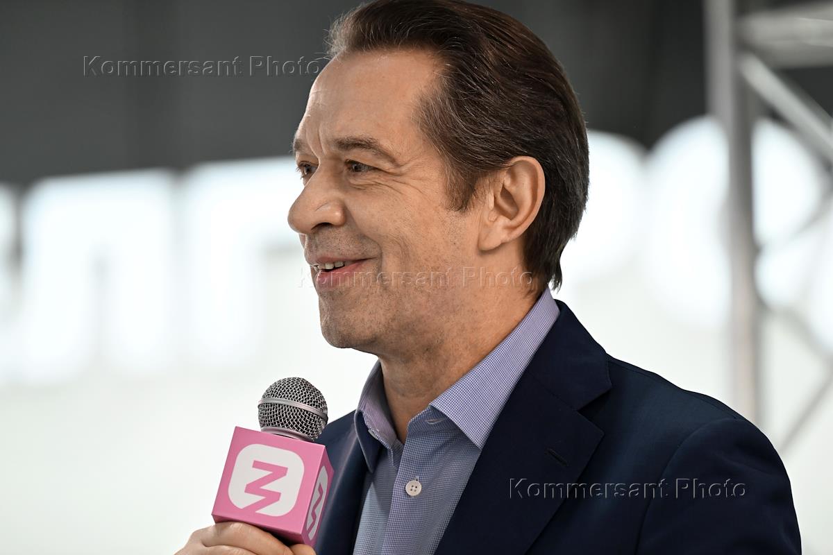 Всемирный фестиваль молодежи на Федеральной территории "Сириус". Марафон "Знание. Первые". Председатель союза театральных деятелей России, художественный руководитель театра и театральной школы Олега Табакова Владимир Машков во время лекции "Россия в сердце: патриотизм без лозунгов".
