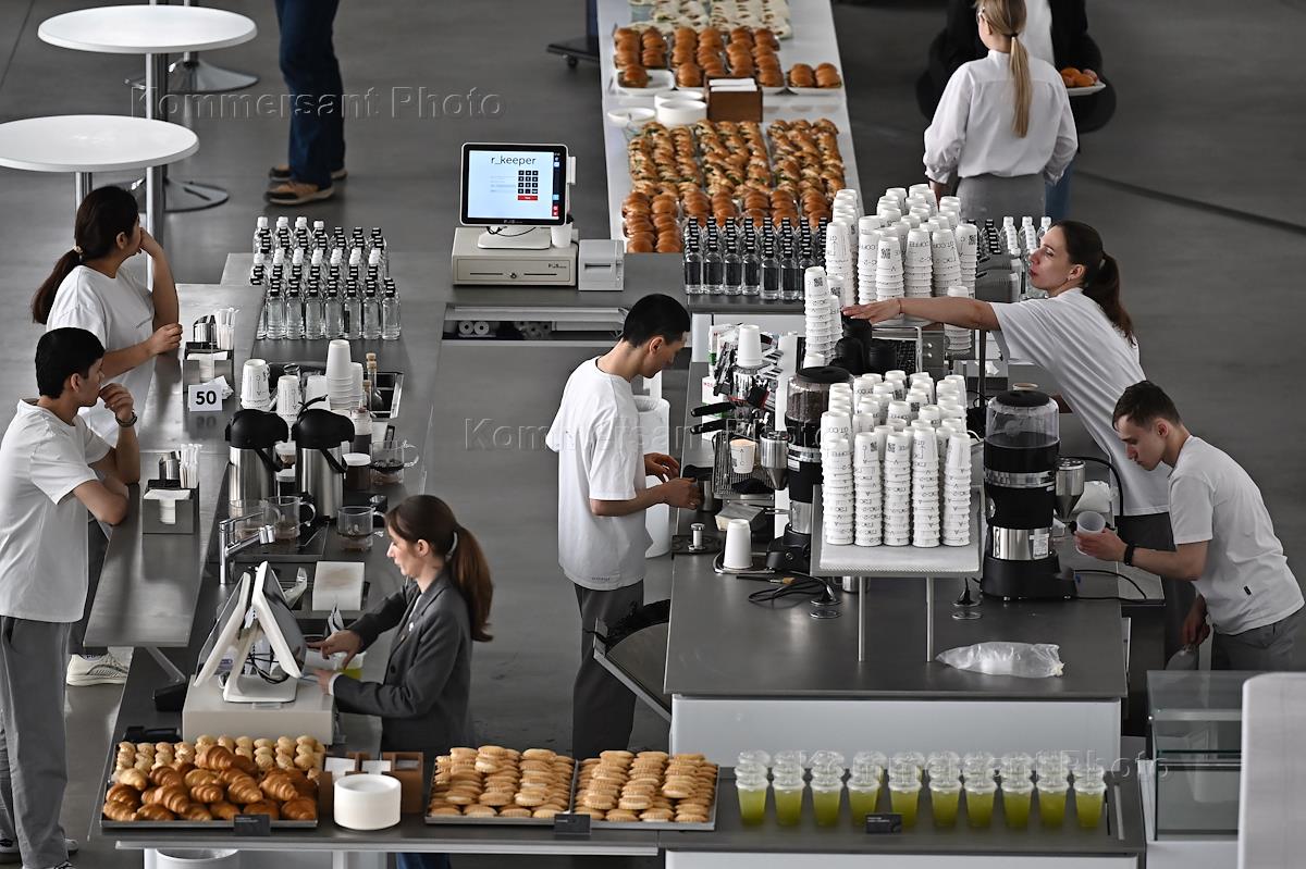 Открытая конференция компании VK по технологиям в Доме культуры ГЭС - 2. Жанровая фотография. Зона питания участников конференции.