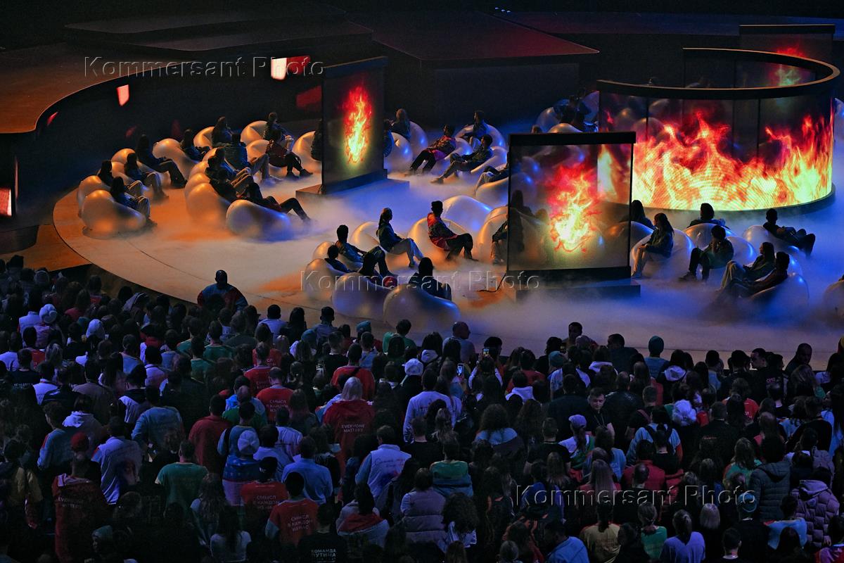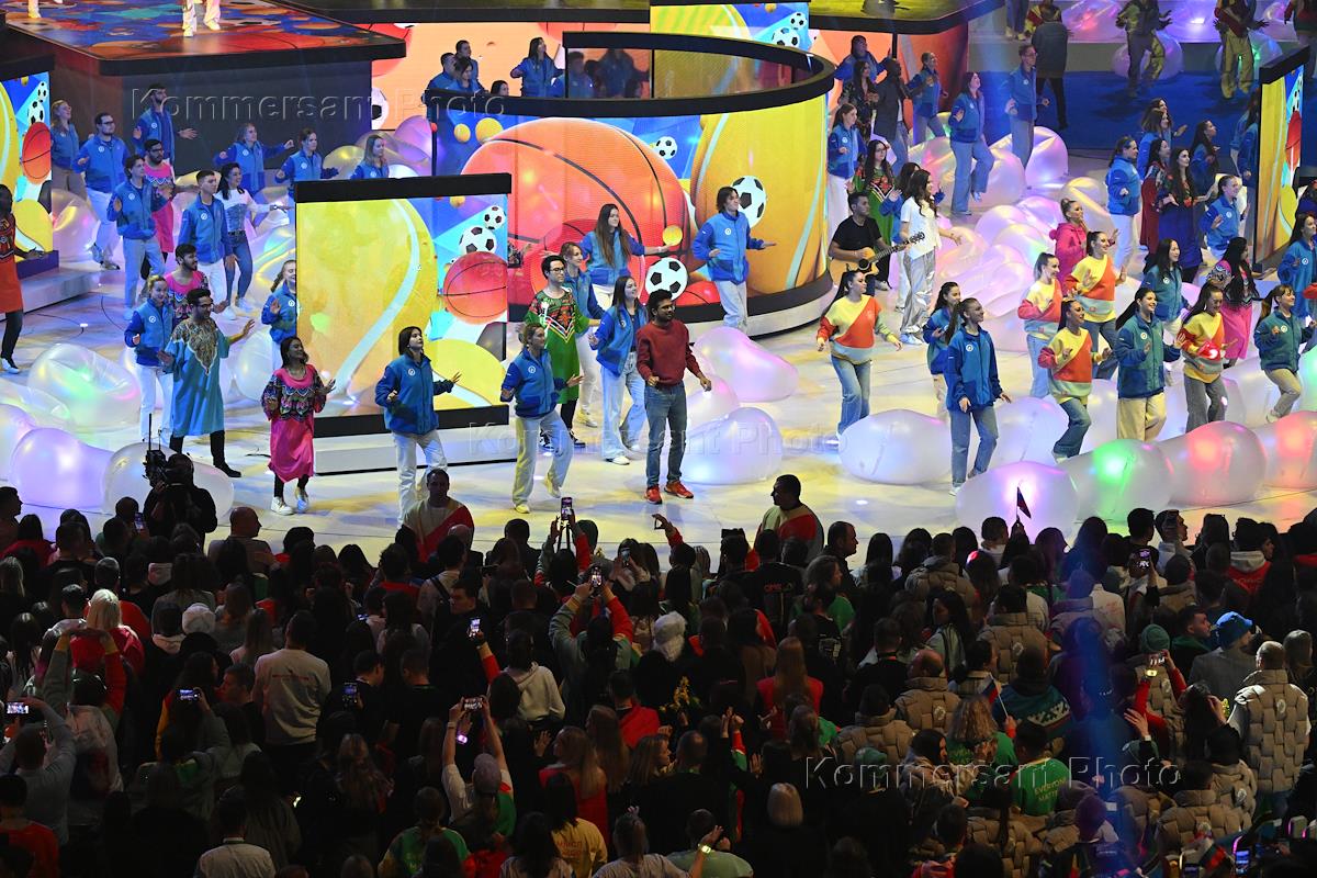 Всемирный фестиваль молодежи 2024" на Федеральной территории "Сириус". Церемония закрытия фестиваля на территории Дворца спорта "Большой" (международный молл "Арт.Молодость"). Выступление артистов на церемонии.