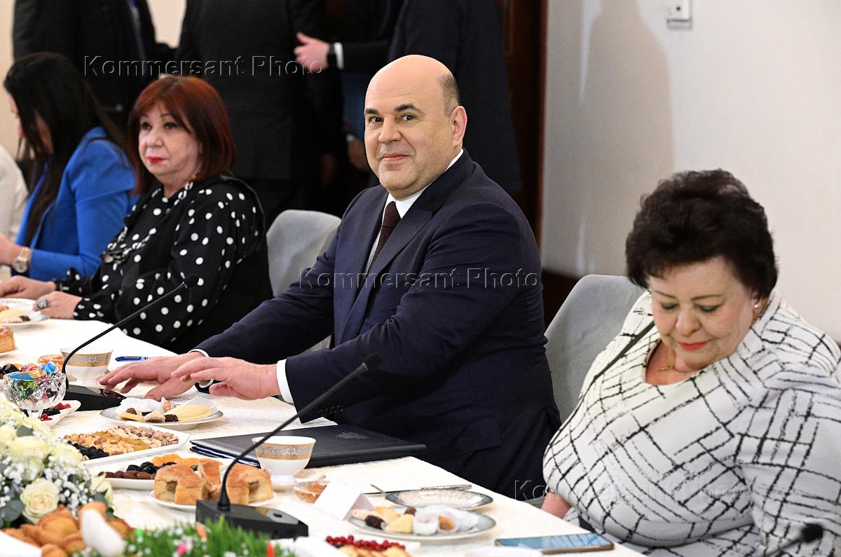 Working trip of Prime Minister Mikhail Mishustin to Baku. Russian Prime Minister Mikhail Mishustin (center) meets with women representatives of public organizations.