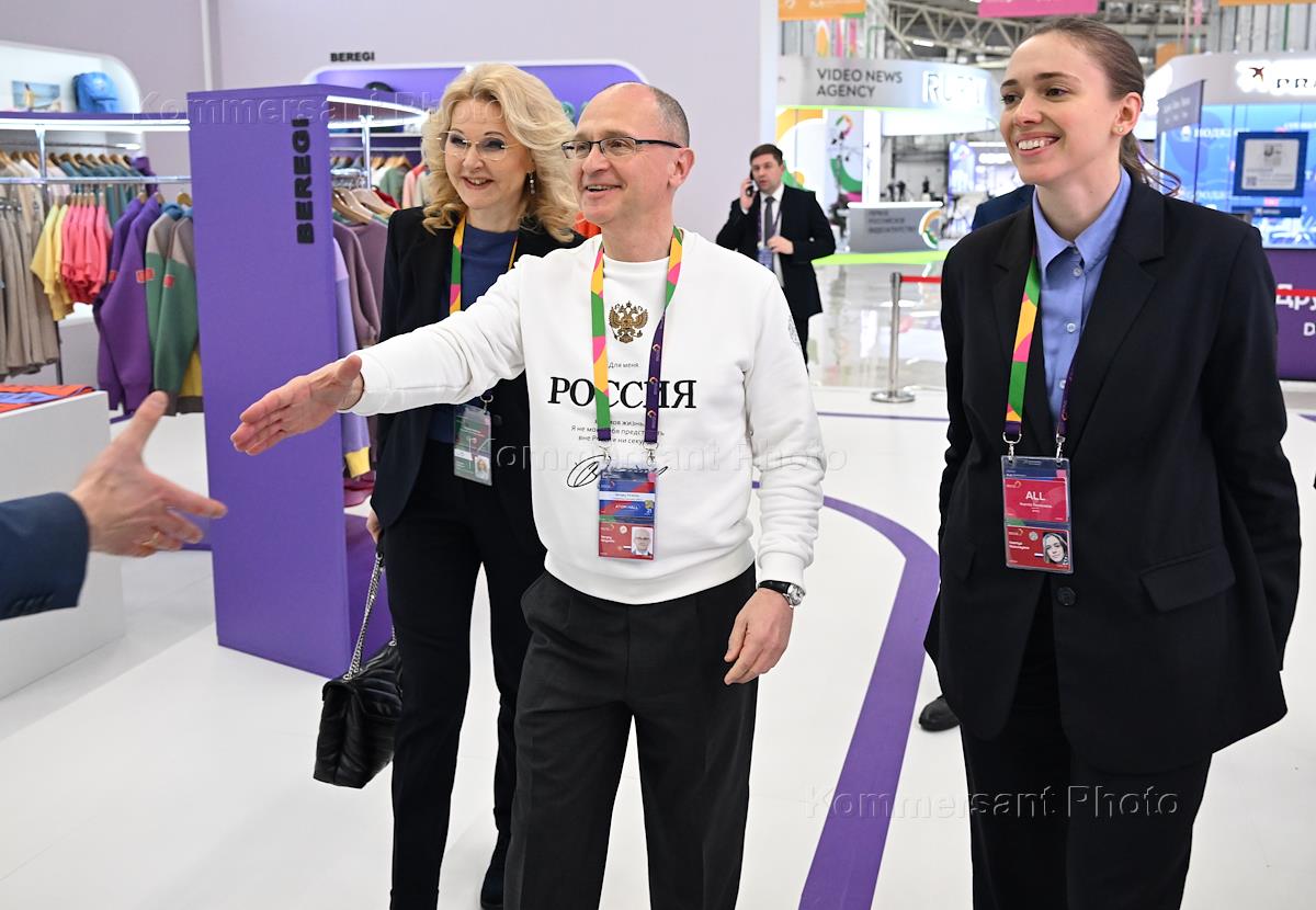 Working trip of Russian President Vladimir Putin to Sochi. Deputy Prime Minister of Russia Tatyana Golikova (left), head of the Federal Agency for Youth Affairs Ksenia Razuvaeva (right) and First Deputy Head of the Russian Presidential Administration Sergei Kiriyenko (center) before the closing ceremony of the World Youth Festival 2024 at the Sirius Federal Territory.