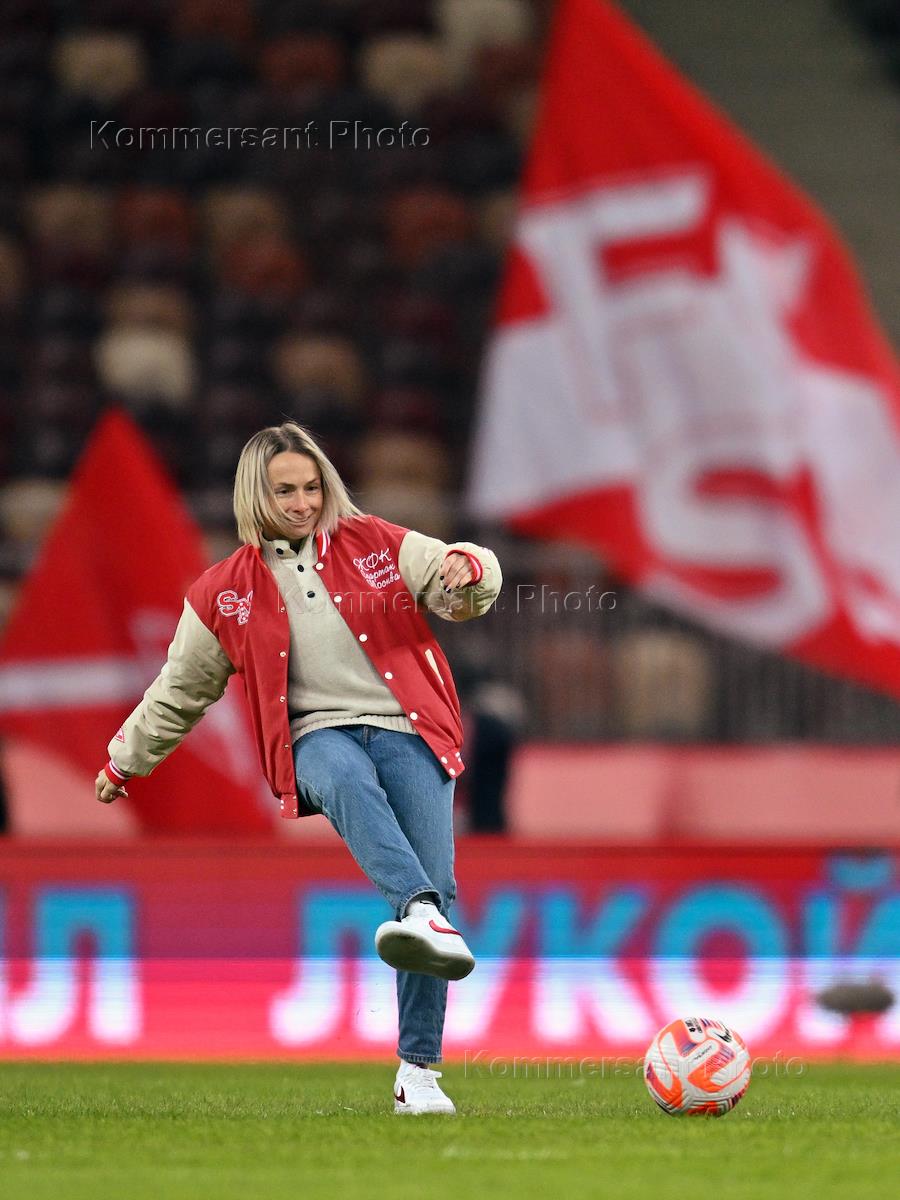 Russian Premier League (RPL). MIR - Russian Football Championship 2023/2024. 20th round. Match between the teams "Spartak" (Moscow) - "Fakel" (Voronezh) at the Luzhniki stadium. Manager of the women's football club "Spartak" Elena Terekhova during the match.