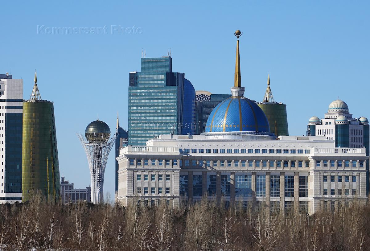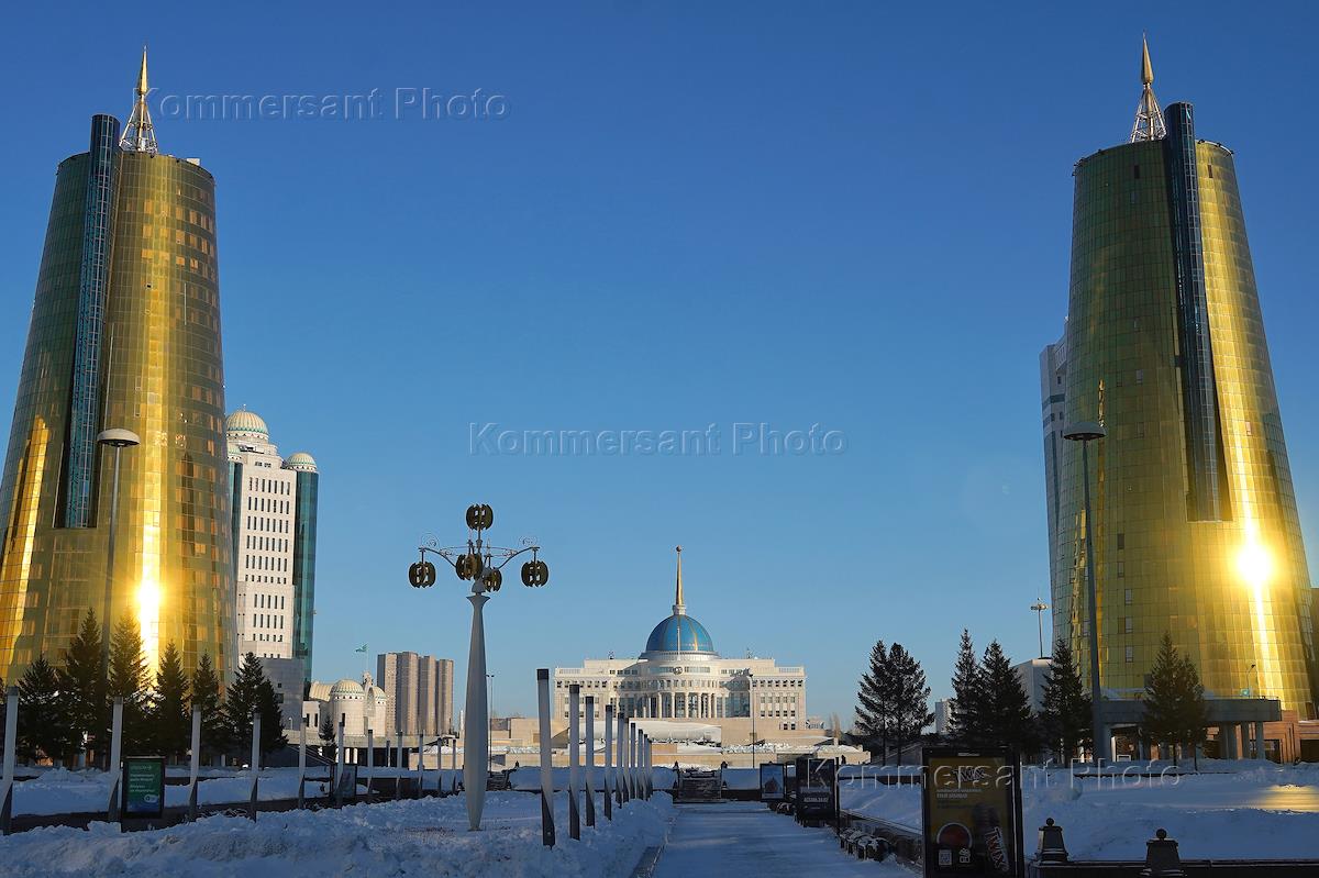 Виды Астаны. Жанровая фотография. Вид на Президентскую резиденцию Акорда и монумент Байтерек.