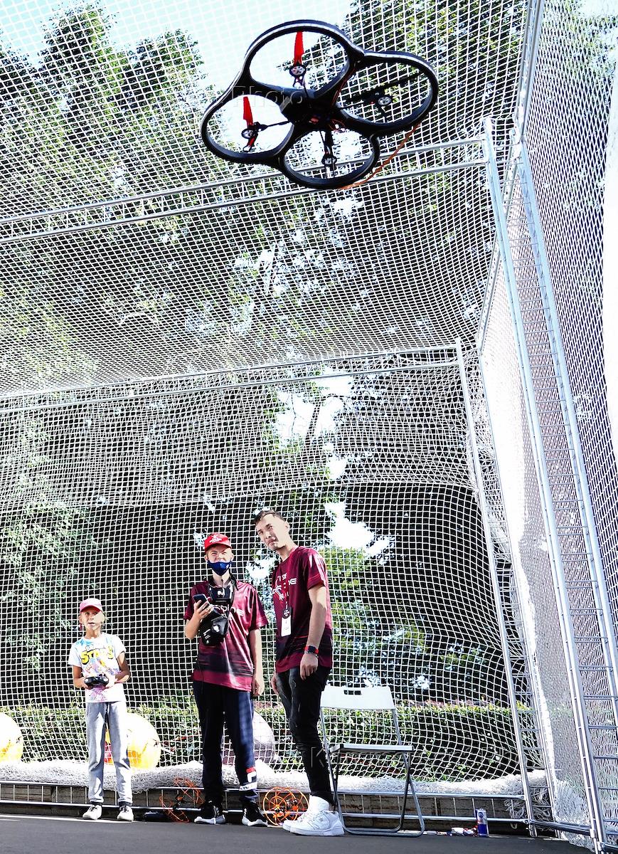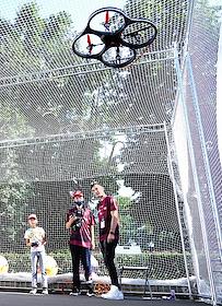 Genre photography. Children during the launch of quadcopters on the territory of VDNH on Industrialists Square.