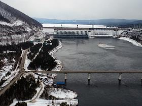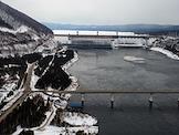 Жанровая фотография. Виды Красноярского края. Красноярская ГЭС (Гидроэлектростанция). Плотина через реку Енисей.