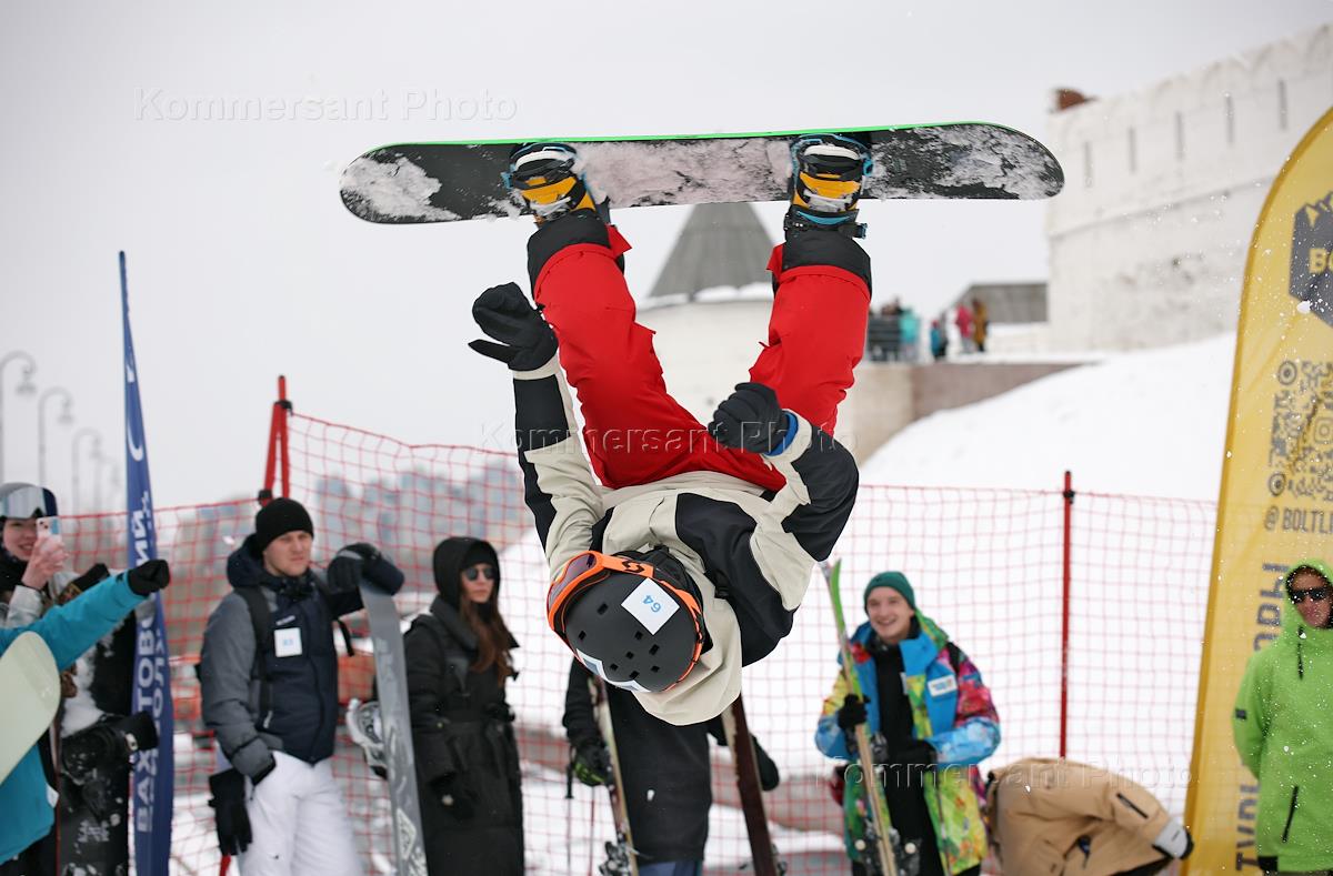 The first alpine skiing festival "Steep Descent" near the walls of the Kazan Kremlin. Genre photography.
