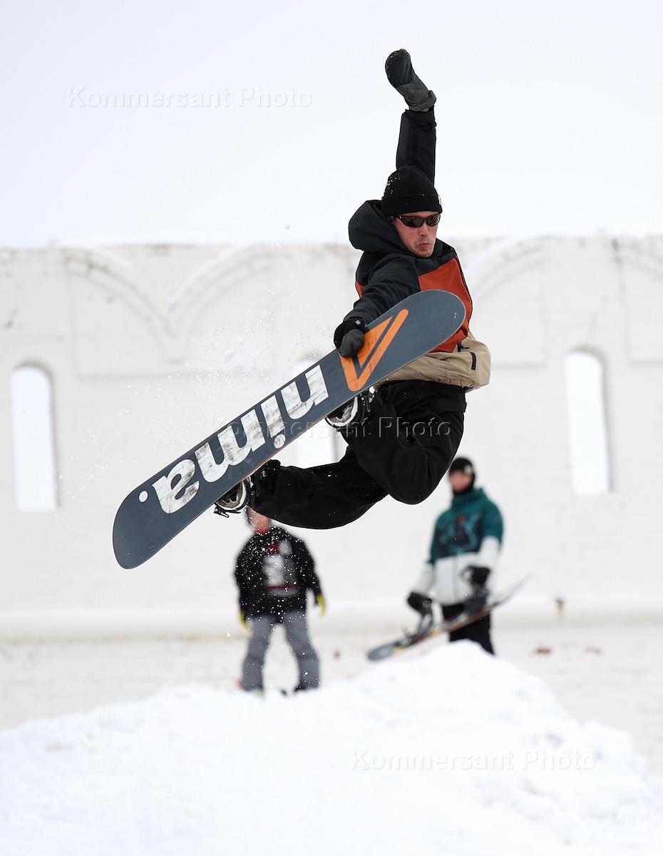 The first alpine skiing festival "Steep Descent" near the walls of the Kazan Kremlin. Genre photography.