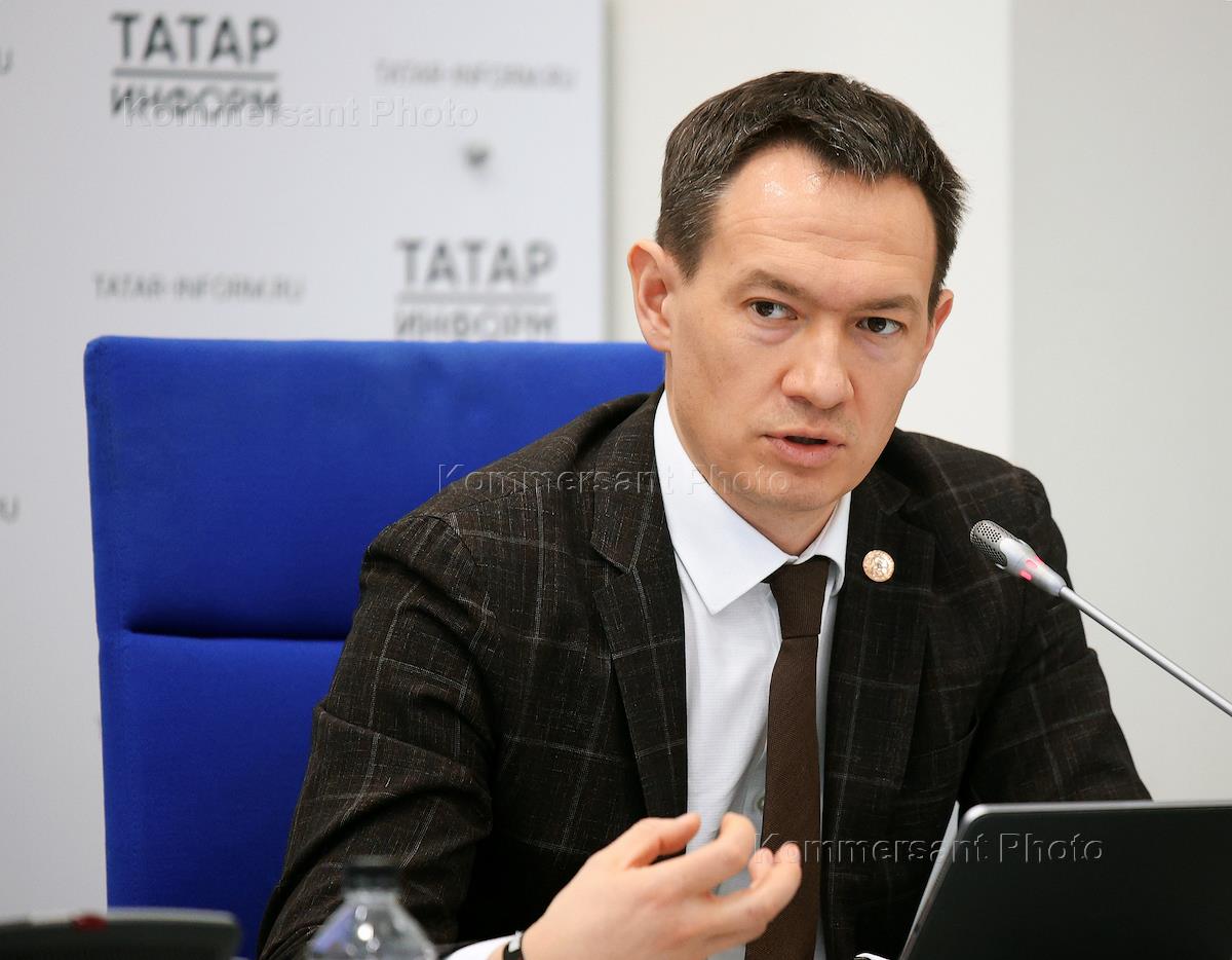 Press conference on the topic: “Improvement of public spaces and courtyard areas in the Republic of Tatarstan: results of 2023 and plans for 2024” at the press center of the Tatar-inform news agency. First Deputy Minister of Construction, Architecture and Housing and Communal Services of the Republic of Tatarstan Alexey Frolov during the press conference.