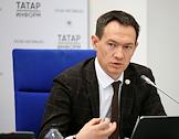 Press conference on the topic: “Improvement of public spaces and courtyard areas in the Republic of Tatarstan: results of 2023 and plans for 2024” at the press center of the Tatar-inform news agency. First Deputy Minister of Construction, Architecture and Housing and Communal Services of the Republic of Tatarstan Alexey Frolov during the press conference.