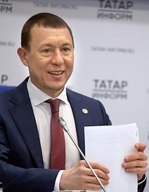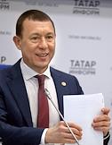 Press conference on the topic: “Improvement of public spaces and courtyard areas in the Republic of Tatarstan: results of 2023 and plans for 2024” at the press center of the Tatar-inform news agency. Mayor of Nizhnekamsk and Head of the Nizhnekamsk municipal district Ramil Mullin during a press conference.
