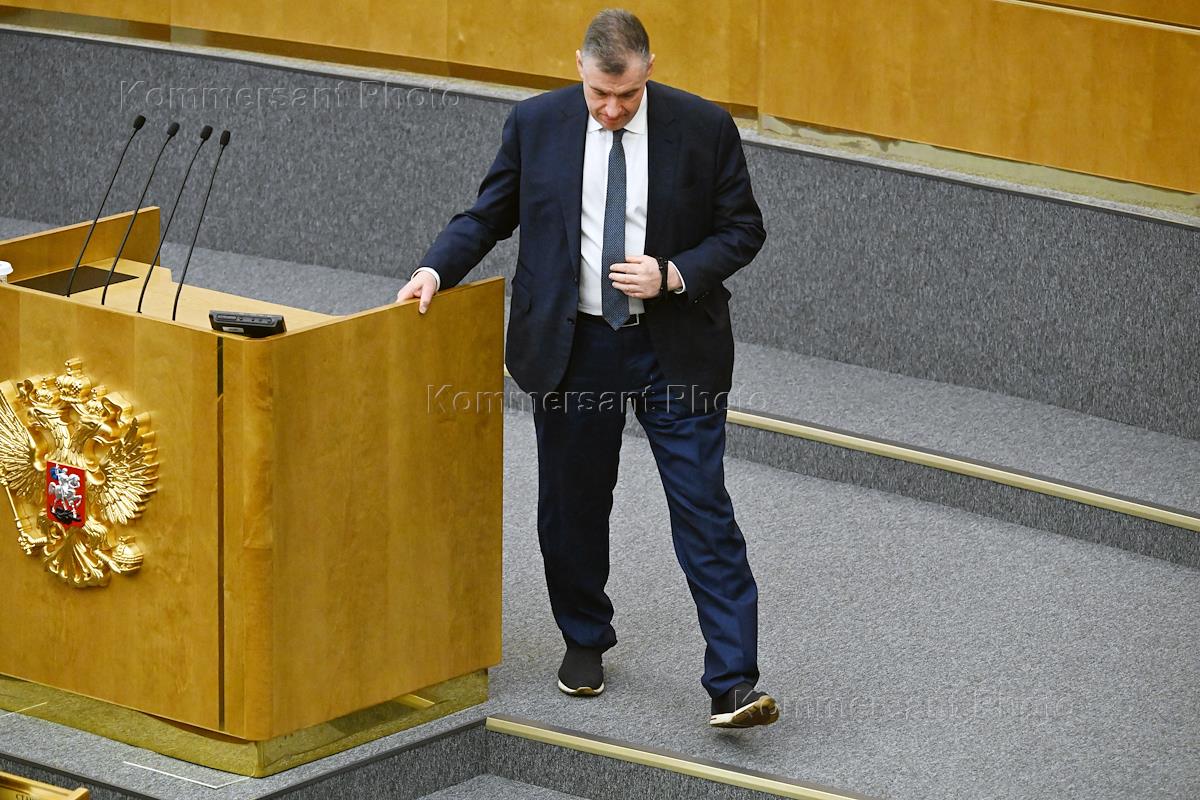 Пленарное заседание Государственной думы (ГД) России. Первый заместитель председателя комитета ГД России по аграрным вопросам Олег Нилов (в центре) во время заседания.