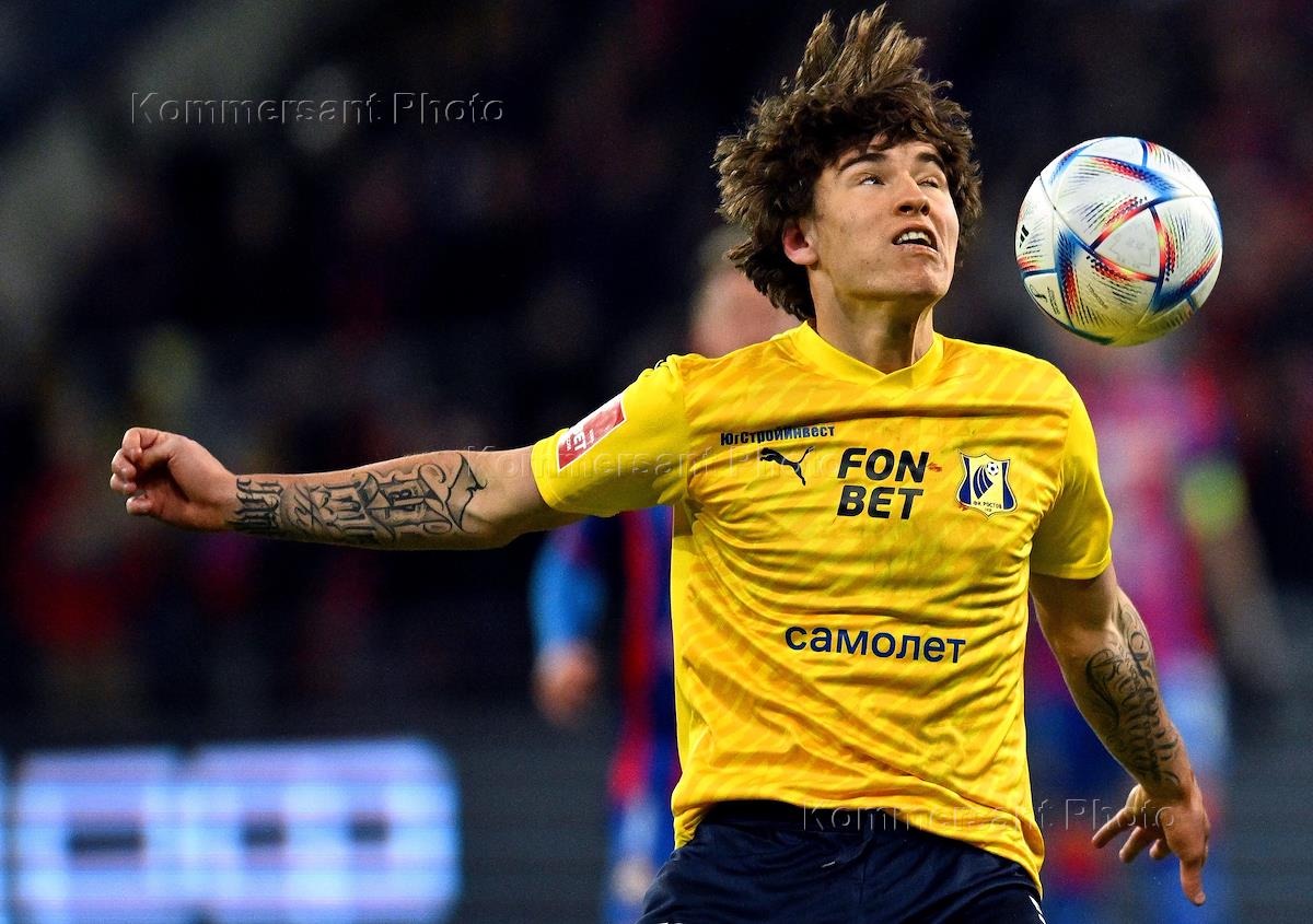 FONBET - Кубок России по футболу. 1/4 финала. Матч между командами ЦСКА (Москва) - "Ростов" (Ростов-на-Дону) на стадионе "ВЭБ Арена". Игрок команды ЦСКА Матвей Лукин во время матча.