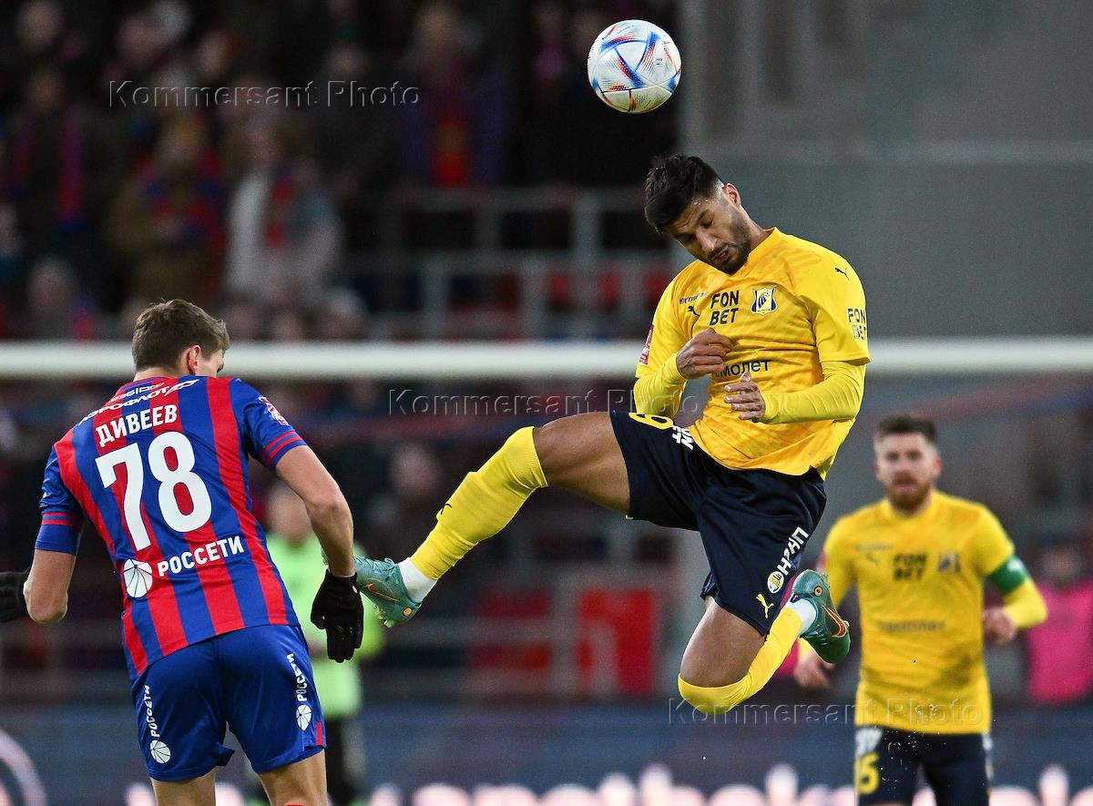 FONBET - Кубок России по футболу. 1/4 финала. Матч между командами ЦСКА (Москва) - "Ростов" (Ростов-на-Дону) на стадионе "ВЭБ Арена". Игрок команды "Ростов" Мохаммад Мохеби (в центре) и игрок команды ЦСКА Игорь Дивеев (слева) во время матча.