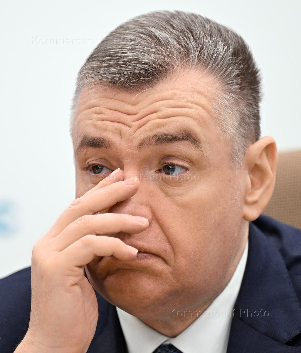 Press conference "On the election campaign of the candidate for the post of President of Russia from the LDPR Leonid Slutsky" at the central office of the Interfax agency. Russian presidential candidate from the Liberal Democratic Party of Russia (LDPR), chairman of the LDPR, head of the LDPR faction in the State Duma of Russia Leonid Slutsky before the start of the press conference.