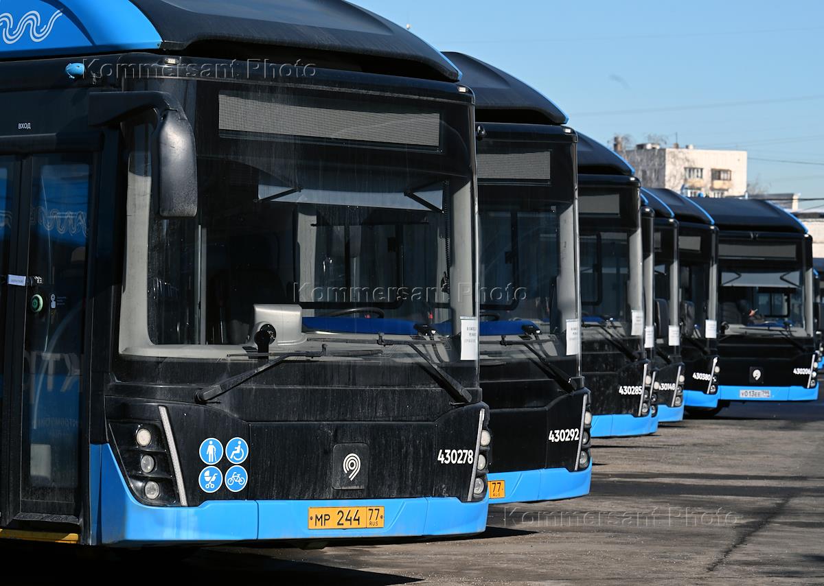 Presentation of the LiAZ electric bus, a new delivery from the Likinsky Bus Plant in an updated design, at the North-Eastern branch of the State Unitary Enterprise "Mosgortrans". Genre photography. Preparation of the LiAZ electric bus.