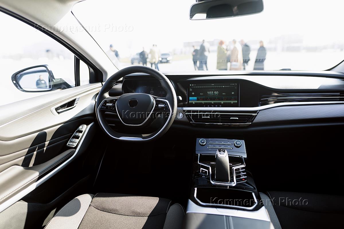 Презентация электромобиля "Яндекс такси", на базе электромобиля калининградском автомобильном заводе "Автотор" - "Амберавто". Салон электромобиля.