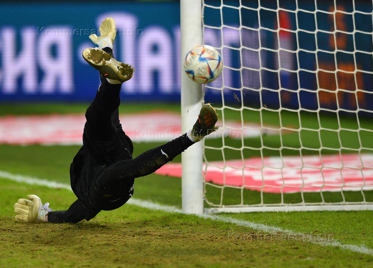 FONBET - Кубок России по футболу. 1/4 финала. Матч между командами "Локомотив" (Москва) - "Балтика" (Калининград) на стадионе "РЖД Арена". Вратарь команды "Локомотив" Илья Лантратов во время матча.