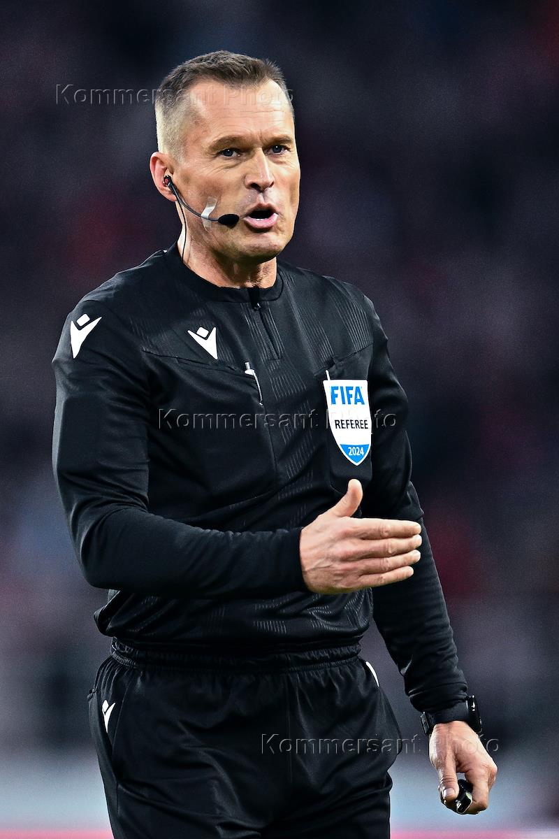 FONBET - Кубок России по футболу. 1/4 финала. Матч между командами "Спартак" (Москва) - "Оренбург"(Оренбург) на стадионе "Лукойл Арена". Главный судья Владислав Безбородов во время матча.