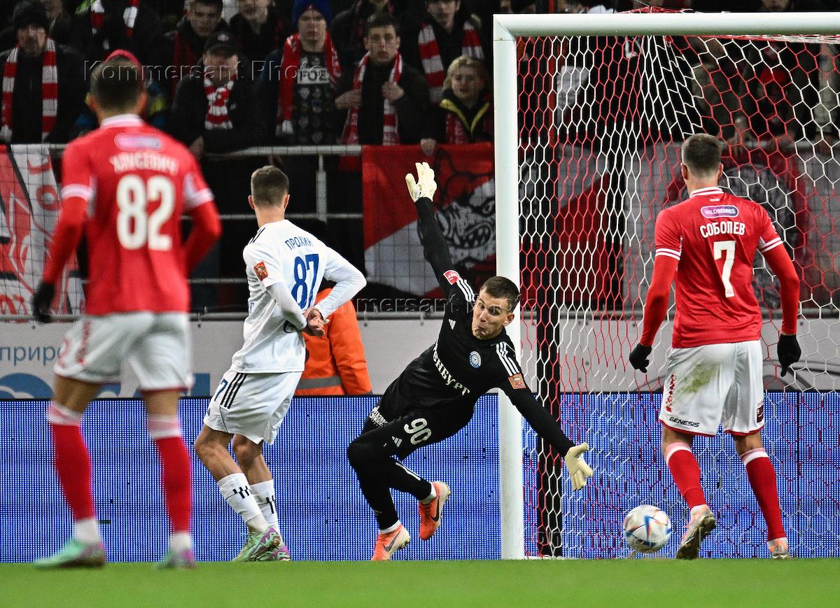 FONBET - Russian Football Cup. 1/4 finals. Match between the teams "Spartak" (Moscow) - "Orenburg" (Orenburg) at the Lukoil Arena stadium. Goalkeeper of the Spartak team Alexander Selikhov during the match.