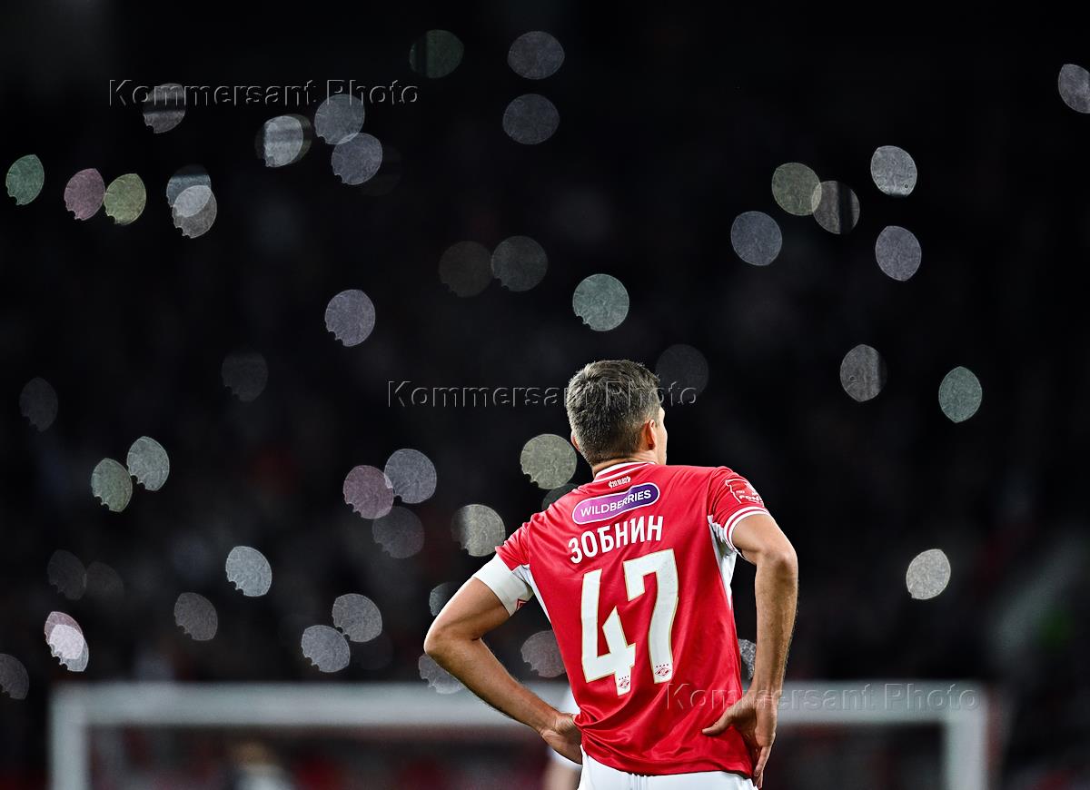 FONBET - Кубок России по футболу. 1/4 финала. Матч между командами "Спартак" (Москва) - "Оренбург" (Оренбург) на стадионе "Лукойл Арена". Игрок команды "Спартак" Александр Соболев во время матча.
