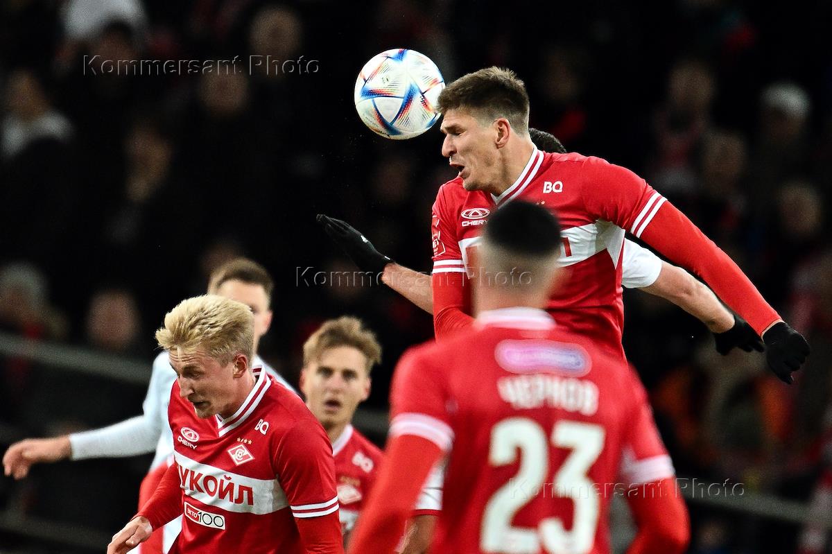 FONBET - Кубок России по футболу. 1/4 финала. Матч между командами "Спартак" (Москва) - "Оренбург"(Оренбург) на стадионе "Лукойл Арена". Игрок команды "Спартак" Срджан Бабич (справа) во время матча.
