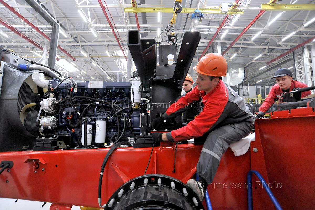 New full-cycle tractor plant of the Rostselmash company. Genre photography.