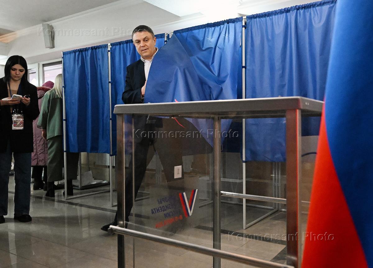 Russian presidential elections in the Lugansk People's Republic (LPR). Head of the LPR Leonid Pasechnik during voting at a polling station.