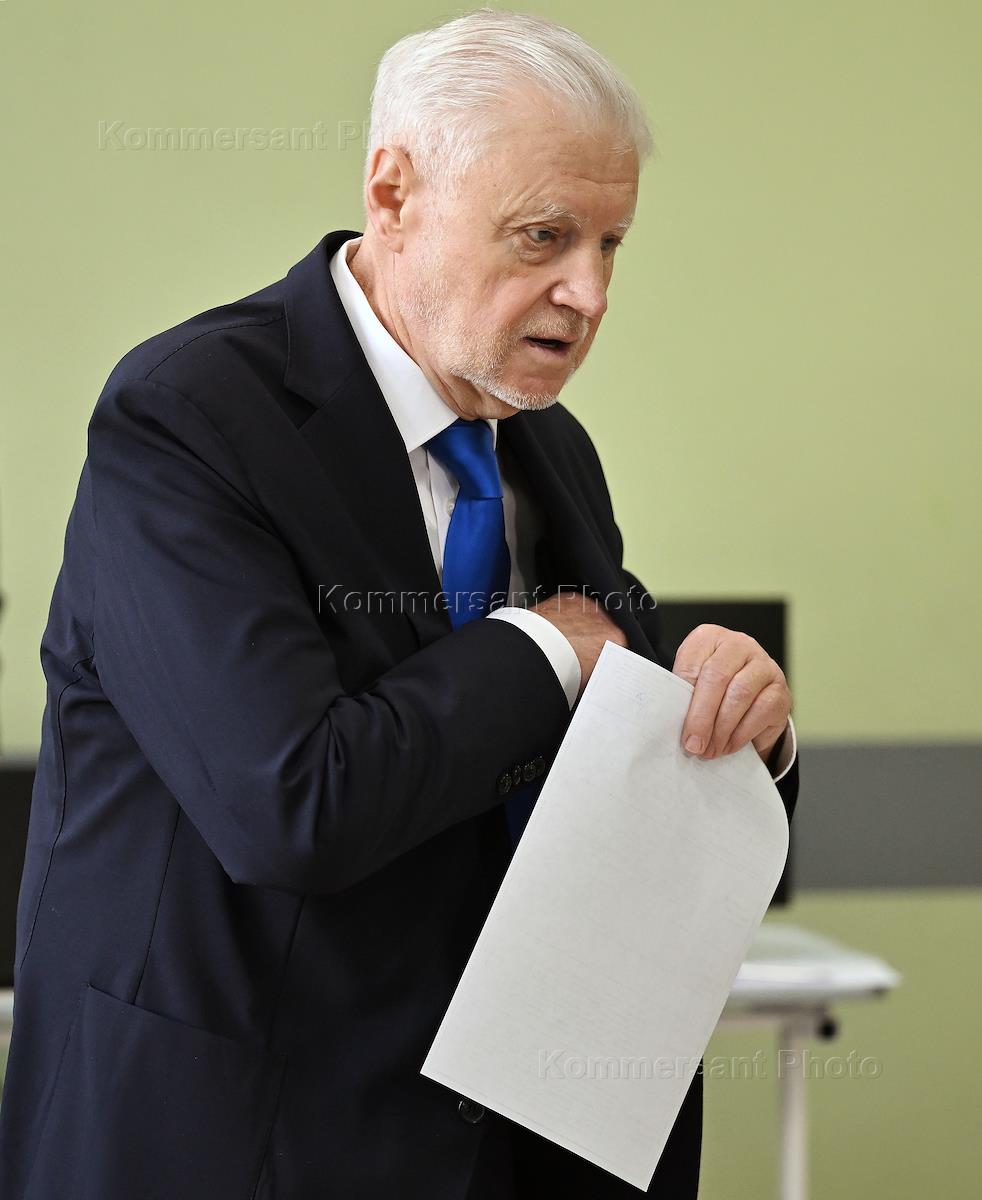 Russian presidential elections. Chairman of the party "A Just Russia - For Truth", head of the faction "A Just Russia - For Truth" in the State Duma of Russia Sergei Mironov during voting at polling station No. 73 at school No. 1520 named after the Kaptsovs.