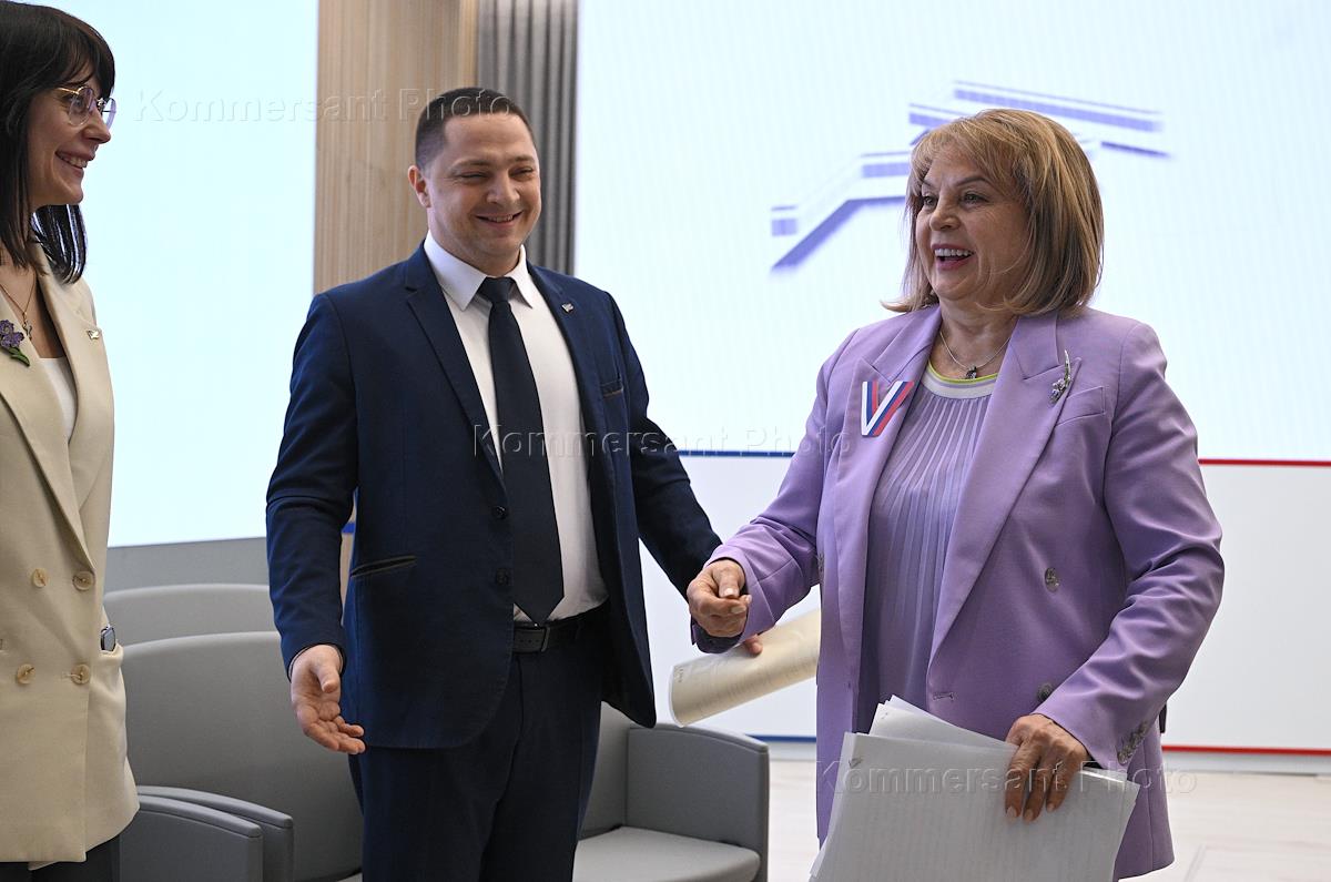 Russian presidential elections. Work of the information center of the Central Election Commission (CEC) of Russia. From left to right: Deputy Chairman of the Central Election Commission of Russia Nikolai Bulaev, Chairman of the Central Election Commission of Russia Ella Pamfilova and member of the Central Election Commission of Russia Pavel Andreev in the information center.