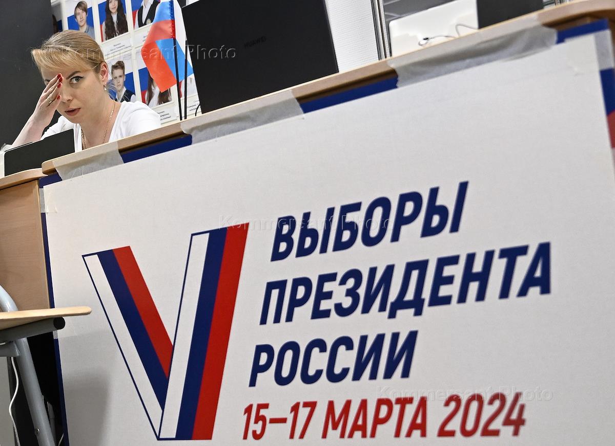 Russian presidential elections. Polling station work. Member of the precinct election commission at the polling station.