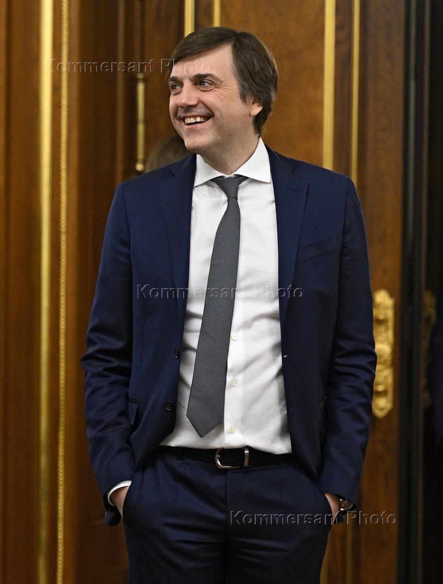 Meeting of the Russian government. Russian Minister of Education Sergei Kravtsov before the start of the meeting.