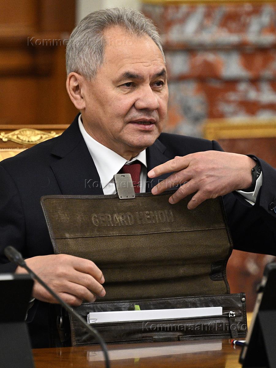 Meeting of the Russian government. Russian Defense Minister Sergei Shoigu before the start of the meeting.