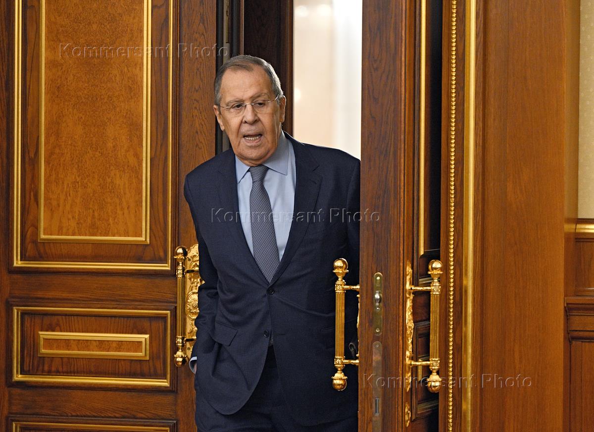 Meeting of the Russian government. Russian Foreign Minister Sergei Lavrov before the start of the meeting.