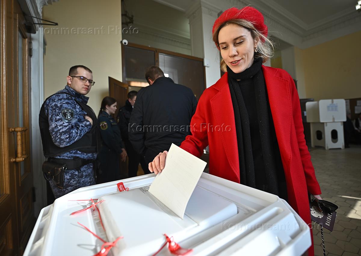 Выборы президента России. Член участковой избирательной комиссии на избирательном участке.