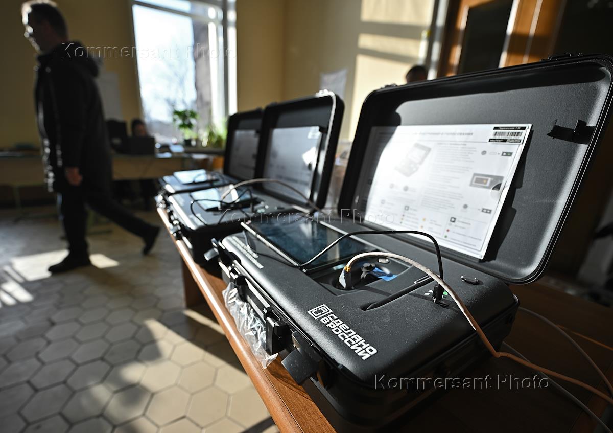 Выборы президента России. Жанровая фотография. Переносное устройство для электронного голосования.