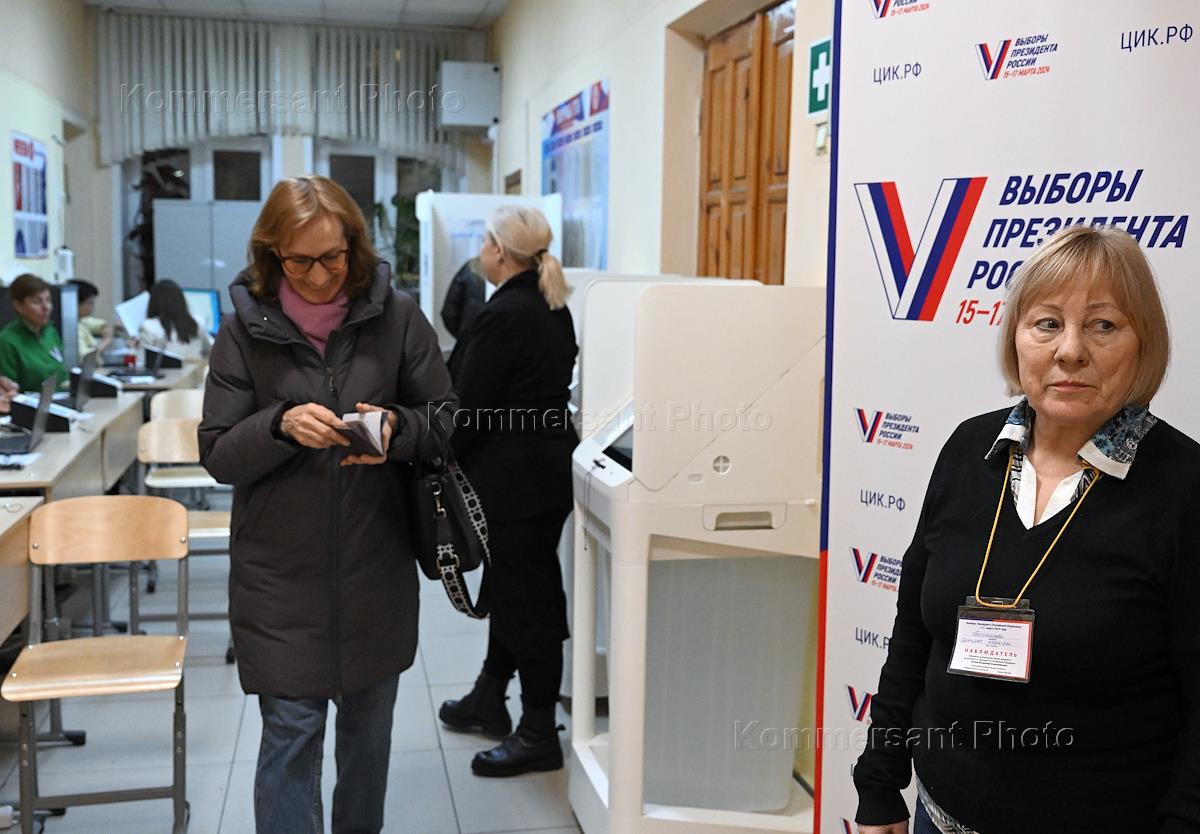 Russian presidential elections. Genre photography. Voting at polling station No. 589.