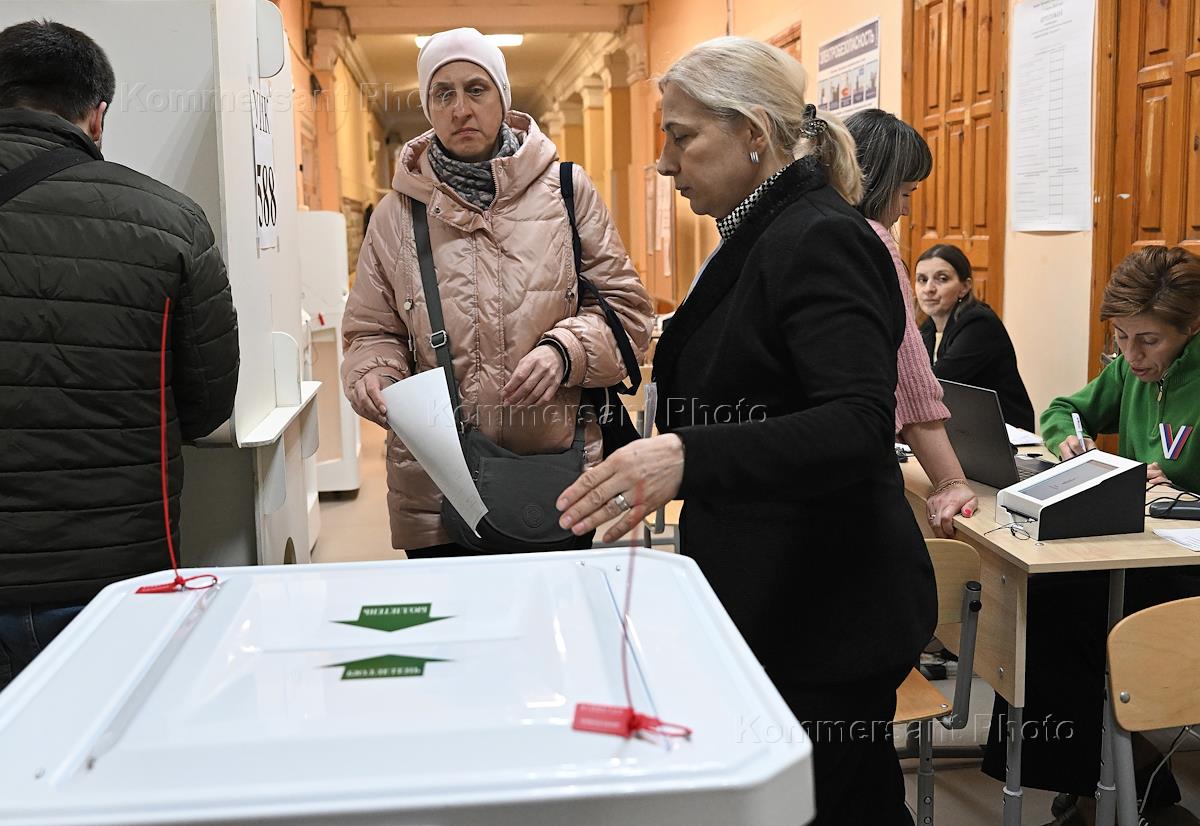 Выборы президента России. Жанровая фотография. Голосование на избирательном участке № 589.