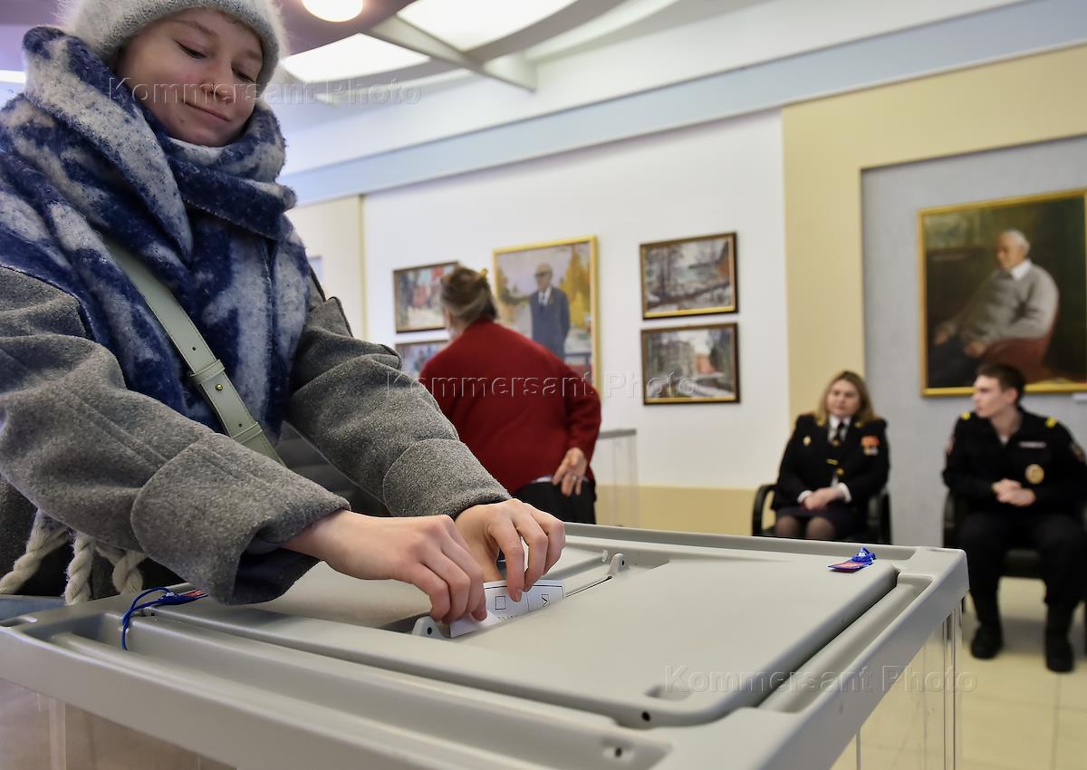 Выборы президента России в Новосибирске 17 марта 2024 года. Голосование на избирательном участке в корпусе Новосибирского государственного университета (НГУ).