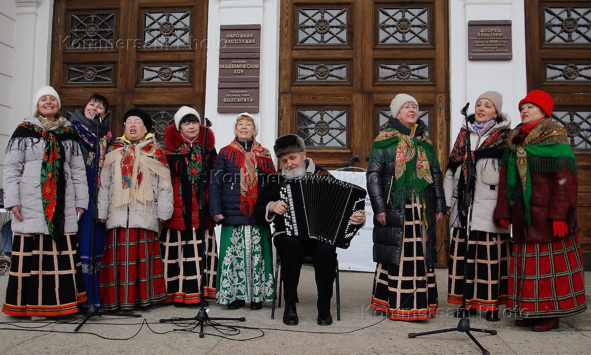 Russian presidential elections. Third day of voting. Work of polling station No. 1104 in the building of the Palace of Culture "Volgogradgidrostroy" in the city of Volzhsky. Performance by an amateur ensemble at the entrance to the polling station.